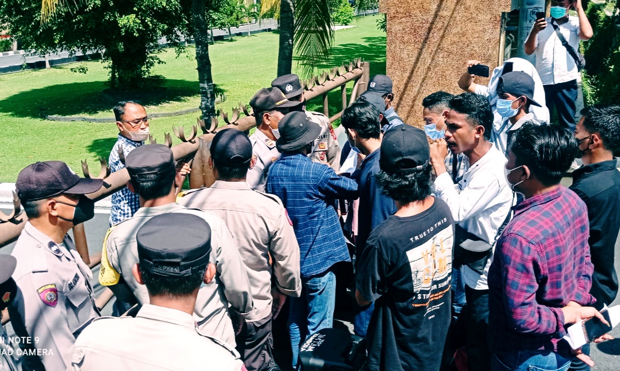 Foto Puluhan Massa Aksi Demonstrasi Saat Didepan Polda NTB |